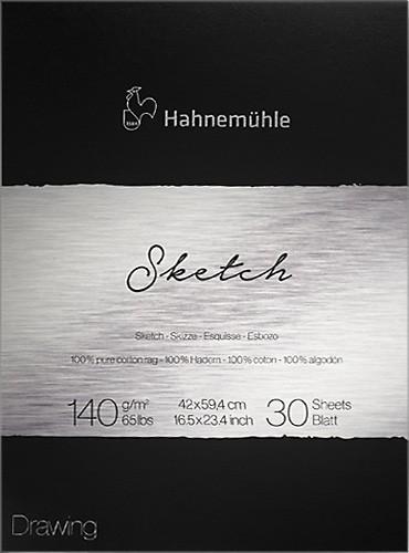 Blok do rysunku Sketch Pad 140g jest jedynym w 100% bawełnianym papierem do szkicowania w kolekcji Hahnemühle. To papier w kolorze naturalnej bieli, charakteryzuje go wyjątkowa ziarnistość powierzchni uzyskana dzięki zastosowaniu w procesie produkcji specjalnych filtrów papierniczych. Ta wyjątkowa ziarnistość koloru pozwala na bardzo dobrą przyczepność koloru. Płynne przejścia i delikatne kreskowanie tworzą głębię i efekty 3d. Papier jest jednocześnie wytrzymały i elastyczny, bezkwasowy, odporny na starzenie i specjalnie zaprojektowany aby sprostać wymaganiom wszystkich technik suchych.