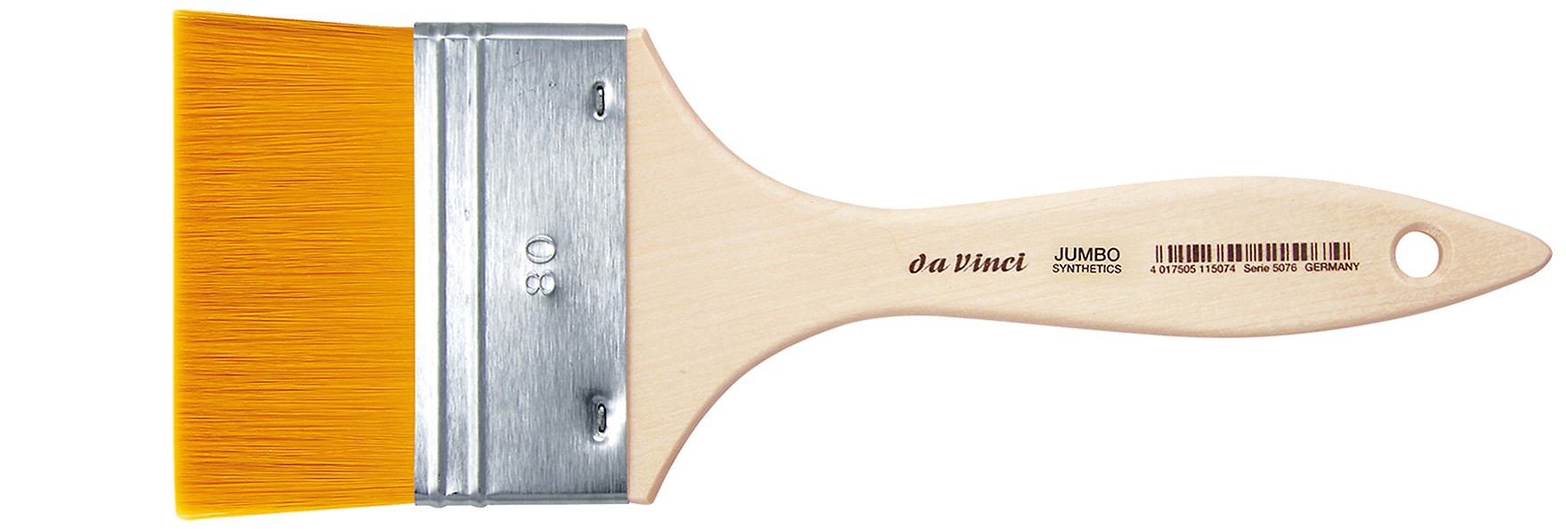 Szeroki pędzel idealny do technik: akrylu, akwareli, werniksowania, gruntowania, malarstwa transparentnego. Złote włosie syntetyczne, bardzo elastyczne.
