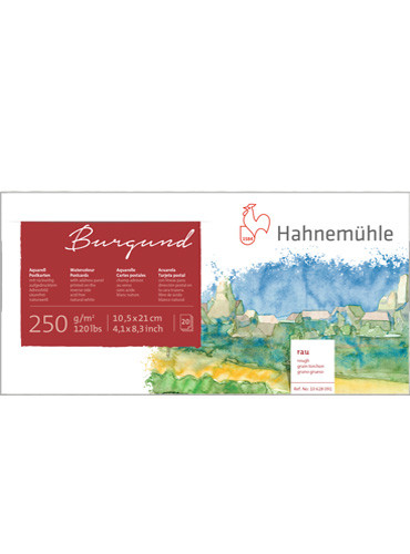 Zestaw kart pocztówkowych wykonanych z papieru akwarelowego Burgund 250g o powierzchni szorstkiej. Blok jest klejony wzdłuż wszystkich krawędzi wykonany z papieru bezkwasowego o najwyższej odporności na starzenie. Na odwrocie karty zaznaczone są miejsca do wpisania tekstu z życzeniami, pozdrowieniami oraz adresu.