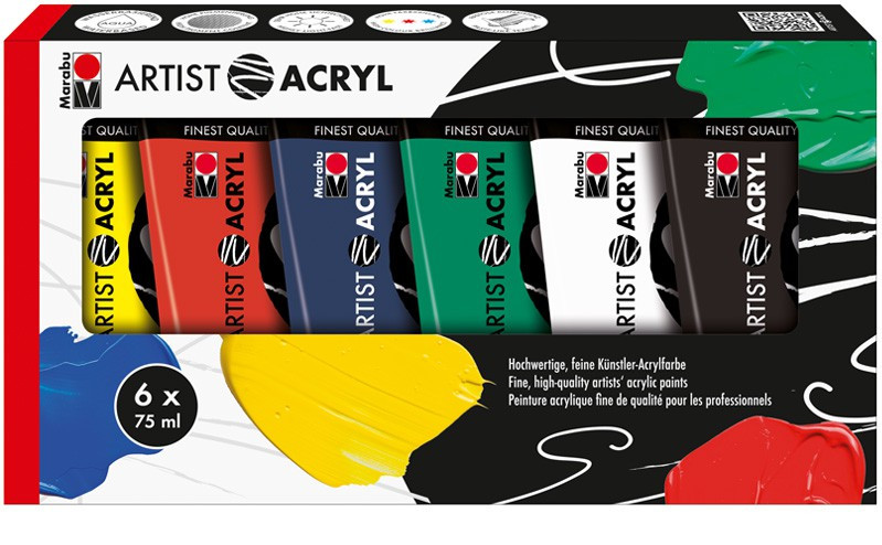 Komplet farb akrylowych Marabu ARTIST ACRYL 6x75 ml - art. 1220000000087