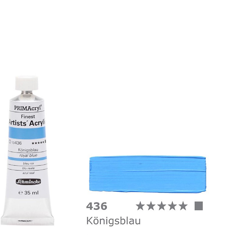 Doskonale kryjący jasny błękit królewski. Powstał przez połączenie pigmentów: kobaltowego-Spinel (Co, Al), Titanium dioxide i specjalnie zaprojekowanego spoiwa akrylowego. Farba o najwyższej odporności na światło.
