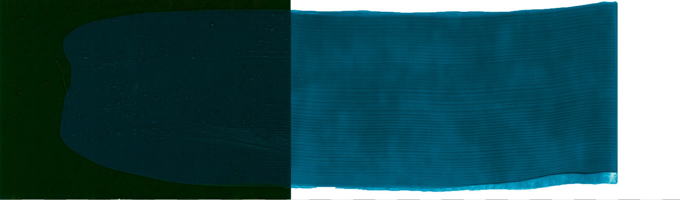 W pełni laserunkowy, świetlisty turkusowy błękit. Jest kolorem jednopigmentowym. Powstał przez połączenie pigmentu Phthalocyanine i specjalnie zaprojekowanego spoiwa akrylowego. Farba o najwyższej odporności na światło.