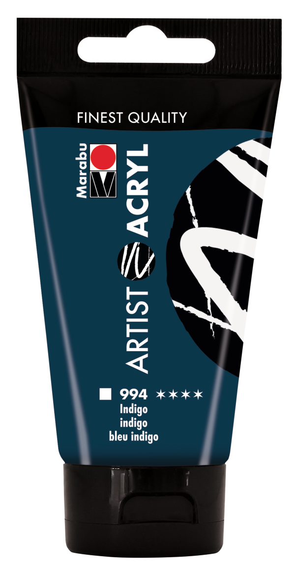 Klasyczne indygo. Głęboki, bardzo intensywny doskonale kryjący błękit. Jest kolorem dwupigmentowym. Farba o bardzo dobrej odporności na światło.