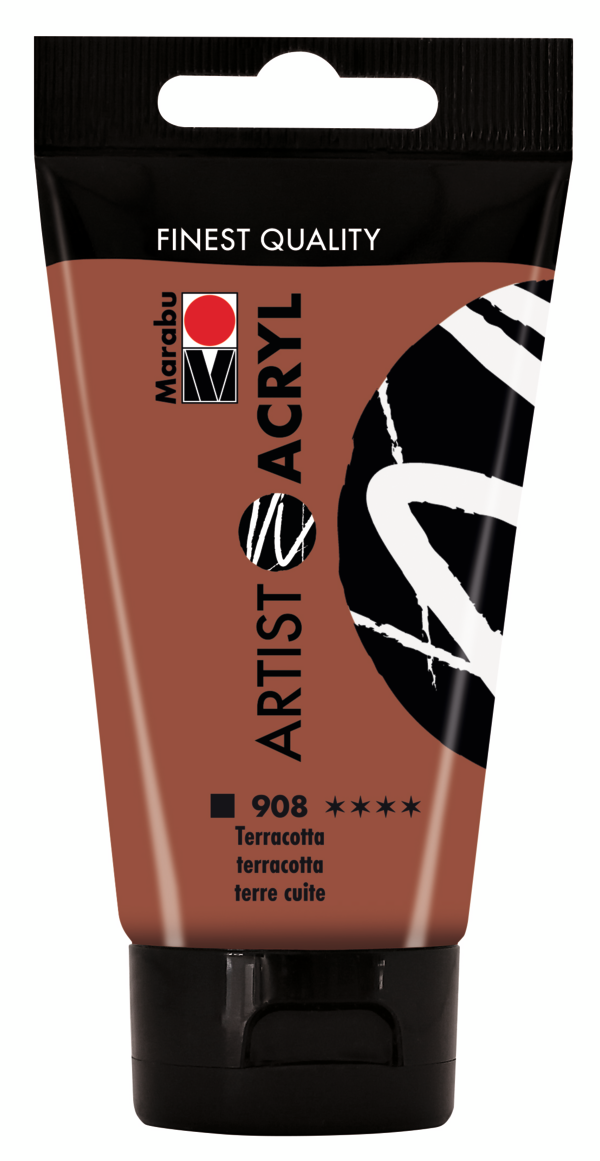 Kryjący kolor terracotty, ciepły, ziemisty odcień będący połączeniem czerwieni, pomarańczu i brązu. Farba o bardzo dobrej odporności na światło.