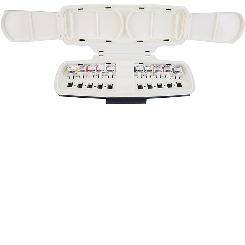 Komplet farb w plastikowej kompaktowej kasecie zawiera 10 pół-kostek farb akwarelowych serii Akademie. Przeznaczony dla profesjonalnych artystów oraz studentów.