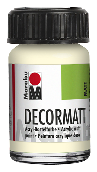 Farba DECORMATT to farba akrylowa o jedwabistym matowym wykończeniu na bazie wody, szybkoschnąca i odporna na warunki atmosferyczne. Charakteryzuje się wyjątkowo jedwabistą kremową konsystencją i bardzo dobrym kryciem. Doskonała jako farba podkładowa i do malowania odręcznego (np.: malowanie bombek), techniki serwetkowej, szablonowania, topowania i innych technik dekoracji. Można nią dekorować drewno, MDF, papier, karton, kamień, szkło i porcelanę, plastik akrylowy, a nawet metal. Malowaną powierzchnię można dodatkowo zabezpieczyć lakierem.