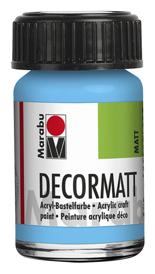 Farba DECORMATT to farba akrylowa o jedwabistym matowym wykończeniu na bazie wody, szybkoschnąca i odporna na warunki atmosferyczne. Charakteryzuje się wyjątkowo jedwabistą kremową konsystencją i bardzo dobrym kryciem. Doskonała jako farba podkładowa i do malowania odręcznego (np.: malowanie bombek), techniki serwetkowej, szablonowania, topowania i innych technik dekoracji. Można nią dekorować drewno, MDF, papier, karton, kamień, szkło i porcelanę, plastik akrylowy, a nawet metal. Malowaną powierzchnię można dodatkowo zabezpieczyć lakierem.