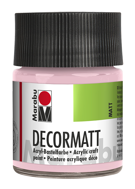 Farba DECORMATT to farba akrylowa o jedwabistym matowym wykończeniu na bazie wody, szybkoschnąca i odporna na warunki atmosferyczne. Charakteryzuje się wyjątkowo jedwabistą kremową konsystencją i bardzo dobrym kryciem. Doskonała jako farba podkładowa i do malowania odręcznego (np.: malowanie bombek), techniki serwetkowej, szablonowania, topowania i innych technik dekoracji. Można nią dekorować drewno, MDF, papier, karton, kamień, szkło i porcelanę, plastik akrylowy, a nawet metal. Malowaną powierzchnię można dodatkowo zabezpieczyć lakierem.