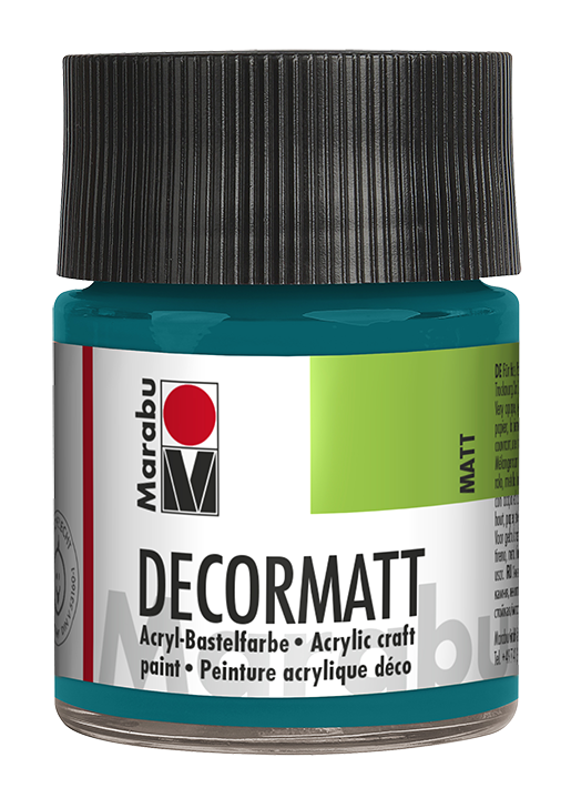 Farba DECORMATT to farba akrylowa o jedwabistym matowym wykończeniu na bazie wody, szybkoschnąca i odporna na warunki atmosferyczne. Charakteryzuje się wyjątkowo jedwabistą kremową konsystencją i bardzo dobrym kryciem. Doskonała jako farba podkładowa i do malowania odręcznego (np.: malowanie bombek), techniki serwetkowej, szablonowania, topowania i innych technik dekoracji. Można nią dekorować drewno, MDF, papier, karton, kamień, szkło i porcelanę, plastik akrylowy, a nawet metal. Malowaną powierzchnię można dodatkowo zabezpieczyć lakierem.