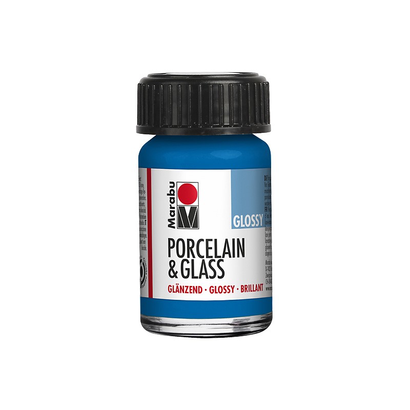 Wodna farba do porcelany i szkła o wysokim połysku w kolorze gencjany. Malowaną powierzchnię należy dokładnie wyczyścić płynem do mycia naczyń lub Marabu Cleaner, by była wolna od kurzu i tłuszczu, należy również spłukać wszystkie pozostałości detergentu. Wszystkie kolory przed użyciem muszą być dobrze wymieszane, ponieważ pigmenty mogą osadzać na dnie szklanego słoiczka – nie wstrząsać! Pędzel należy umyć natychmiast po skończonej pracy środkiem Marabu Cleaner. Farba jest sucha w dotyku po 30 minutach, wysycha całkowicie po 48 godzinach, a po 72 godzinach malowany przedmiot może być bezpiecznie zmywany w zmywarce (max. 50°C). Idealna do łączenia z Marabu Porcelain & Glass Painter (wtedy wypalać w piekarniku: 160° C, 30 min.). Można mieszać z Marabu Porcelain i Marabu Glas.