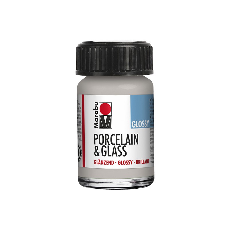 Wodna farba do porcelany i szkła o wysokim połysku w kolorze metalicznego srebra. Malowaną powierzchnię należy dokładnie wyczyścić płynem do mycia naczyń lub Marabu Cleaner, by była wolna od kurzu i tłuszczu, należy również spłukać wszystkie pozostałości detergentu. Wszystkie kolory przed użyciem muszą być dobrze wymieszane, ponieważ pigmenty mogą osadzać na dnie szklanego słoiczka – nie wstrząsać! Pędzel należy umyć natychmiast po skończonej pracy środkiem Marabu Cleaner. Farba jest sucha w dotyku po 30 minutach, wysycha całkowicie po 48 godzinach, a po 72 godzinach malowany przedmiot może być bezpiecznie zmywany w zmywarce (max. 50°C). Idealna do łączenia z Marabu Porcelain & Glass Painter (wtedy wypalać w piekarniku: 160° C, 30 min.). Można mieszać z Marabu Porcelain i Marabu Glas.