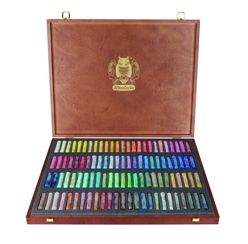 Zestaw PREMIUM zawierający 100 kolorów pasteli ekstra suchych firmy Schmincke. Możliwość zakupu pustej kasety (77 910) o wymiarach 41,0 x 48,6 x 5,5 cm (dł./szer./wys.).