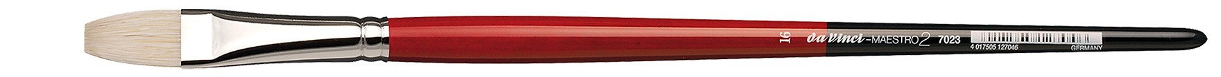 Płaski pędzel o długiej zaokrąglonej szczecinie do technik olejnych i akrylowych.