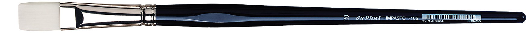 Pędzel płaski do akrylu w postaci płynnej i zagęszczonej, do technik wymagających użycia szpachelek. Wyjątkowo sprężysta szczecina, syntetyczna do pracy z żelami i pastami.