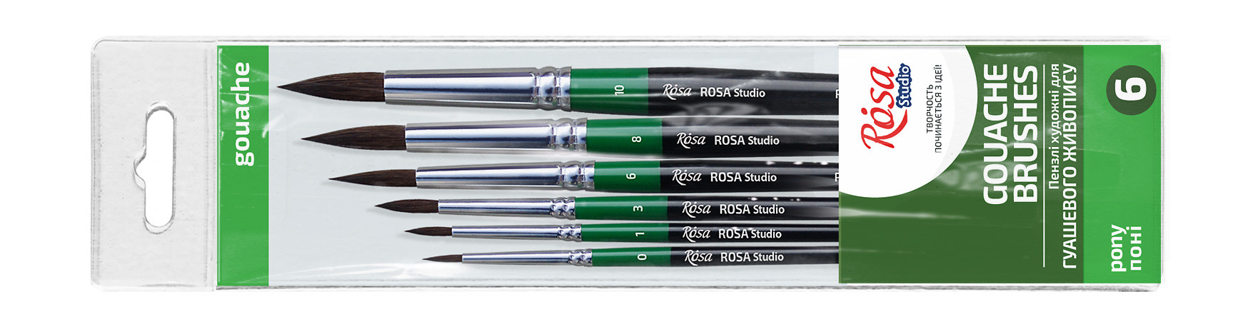 Zestaw 6 krótkich pędzli Rosa Studio GOUACHE zawiera: