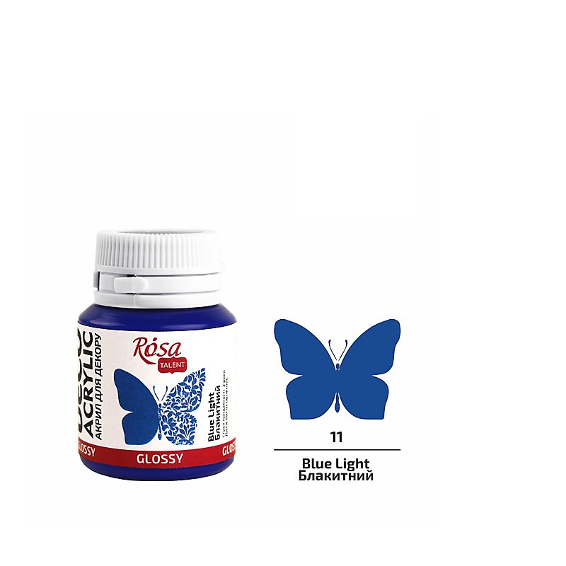 ROSA TALENT DECO ACRYLIC glossy to wodne farby akrylowe o błyszczącym wykończeniu, które sprawiają, że zdobione przedmioty pięknie lśnią. Farby akrylowe z połyskiem znajdują zastosowanie w większości technik hobbystycznych m.in.: dekorowanie, decoupage, crackling, również malarstwo dekoracyjne i mogą być aplikowane na wiele powierzchni jak: drewno, sklejka, płyta pilśniowa, MDF, papier, karton, zagruntowane płótno, kamień i cegła. Farby te wyróżniają się bogatą kolorystyką, silną przyczepnością i szybkim czasem schnięcia. Są dostępne w szklanych słoiczkach o pojemności 20 ml oraz w zestawach. Farby posiadają atesty, stosowane zgodnie z przeznaczeniem, są bezpieczne, mogą być używane przez dzieci w wieku powyżej 3 lat.