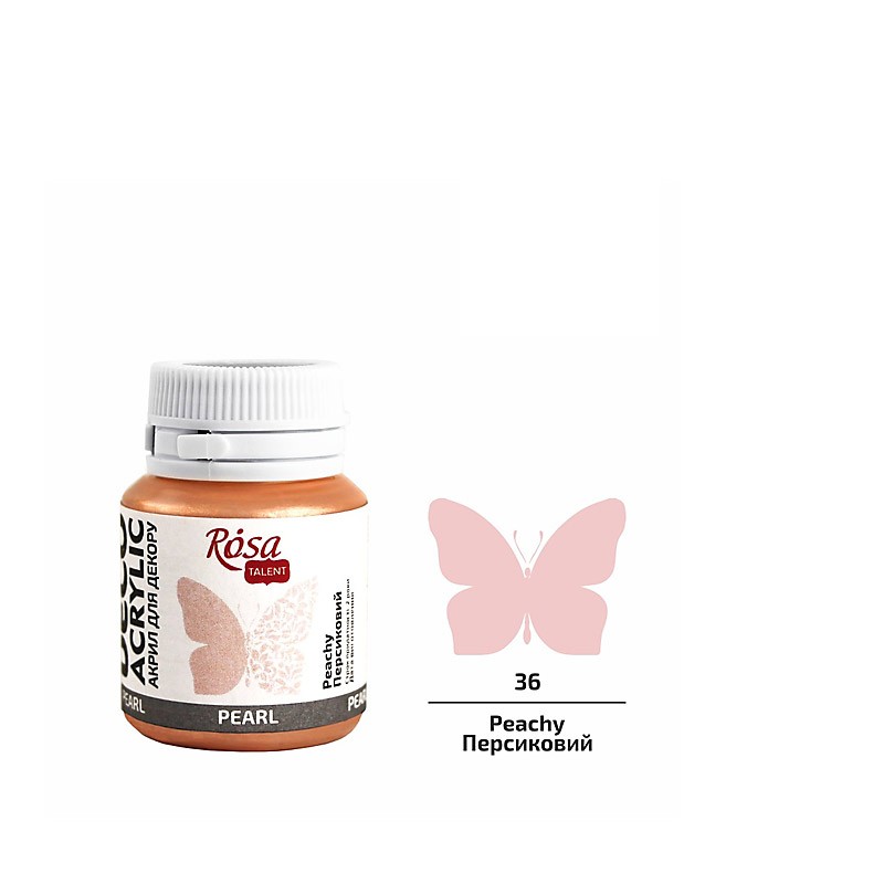 ROSA TALENT DECO ACRYLIC pearl to wodne farby akrylowe o perłowym połysku, nadają zdobionym przedmiotom subtelny wyrafinowany blask. Są idealne do malowania ozdób świątecznych, projektowania kartek, dekoracji przedmiotów. Farby akrylowe perłowe znajdują zastosowanie w technikach hobbystycznych m.in.: dekorowanie, decoupage, crackling, również malarstwo dekoracyjne. Mogą być aplikowane na wiele powierzchni jak: drewno, sklejka, płyta pilśniowa, MDF, papier, karton, zagruntowane płótno, kamień i cegła. Wyróżniają się bogatą kolorystyką, silną przyczepnością i szybkim czasem schnięcia. Są dostępne w szklanych słoiczkach o pojemności 20 ml oraz w zestawach. Farby posiadają atesty, stosowane zgodnie z przeznaczeniem, są bezpieczne, mogą być używane przez dzieci w wieku powyżej 3 lat.