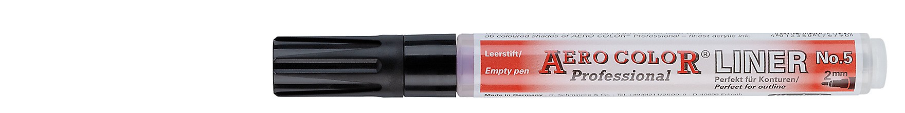 Schmincke AERO COLOR Liner to nowe mozliwosci w technice aerografu. Liner moze byc wielokrotnie napelniany farbami z serii AERO COLOR, Akademie Acryl INK i innymi farbami o konsystencji tuszu. Po kazdym użyciu nalezy dokladnie wymyc koncówke rozpuszczalnikiem AERO COLOR Clean Rapid (50 606) lub woda. Linery maja wymienne końcówki o różnych szerokosciach i pojemnosciach.