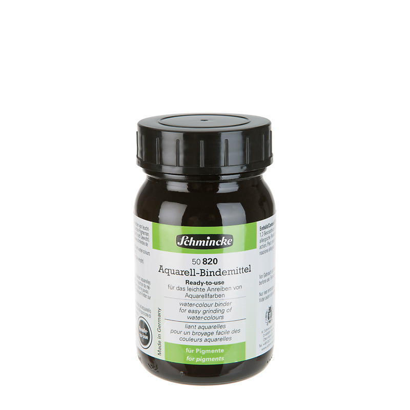 Gotowe do użycia spoiwo akwarelowe, do samodzielnego przygotowanie każdego typu akwareli. Pozwala przygotować lekką, transparentną farbę o dużej płynności jak również nasyconą kolorem farbę akwarelową. Spoiwo i suchy pigment należy wymieszać w stosunku wagowym 2:1. Rozcieńczalne wodą. Ostateczna proporcja uzależniona jest od koloru pigmentu.