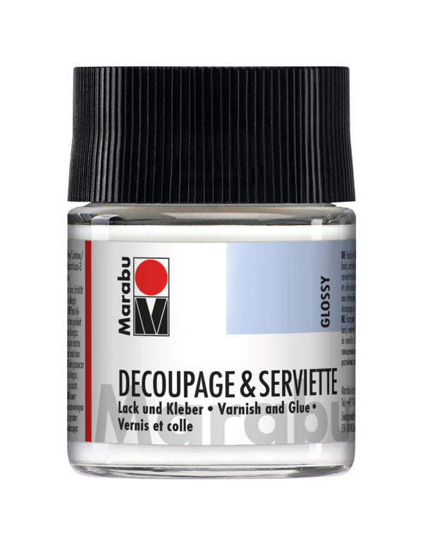 Idealny do techniki decoupage i serwetkowej klej błyszczacy werniks w jednym. Decoupage to bardzo prosta technika zdobnicza polegająca na naklejaniu wzorzystego cienkiego papieru na przedmioty o różnorakich powierzchniach. Wzór można wyciąć, po czym należy zabezpieczyć go kilkoma warstwami werniksu do decoupage, tak by uzyskać gładką jednorodną powierzchnię. Wybrany przedmiot przed nałożeniem wzoru można pomalować farbą akrylową. Do tej metody dekorowania świetnie nadają się serwetki - wtedy mówimy o technice serwetkowej. Techniką tą upiększa się przedmioty z drewna, metalu, szkła, a nawet tekstylia. Jest to technika odpowiednia dla każdego, żadne specjalne zdolności plastyczne nie są tu potrzebne, liczy się pomysłowość.