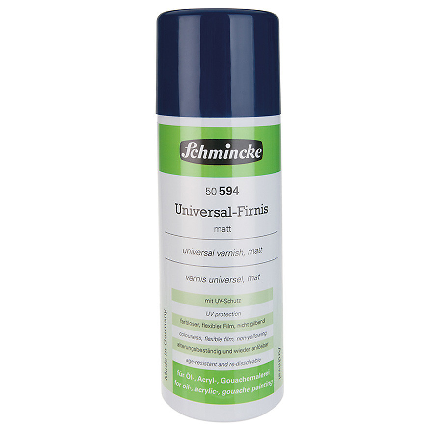 Matowy, szybkoschnący, nie żółknący werniks końcowy z filtrem UV o bardzo szerokim zastosowaniu. Tworzy elastyczne i odporne zabezpieczenie dla wszystkich rodzajów farb artystycznych, druków, fotografii, itp. Rozpylać w sposób krzyżowy z odległości 30-40 cm. Do werniksowania prac olejnych werniks należy stosować nie wcześniej niż po 8-12 miesiącach od ukończenia malowidła, w przypadku malarstwa akrylowego w zależności od grubości warstwy od 3 dni do 1-2 tygodnia, dla gwaszy po około 1 dniu. Wyschniętą warstwę werniksu można usunąć z obrazu substytutem terpentyny (50019), olejkiem terpentynowym (50024) lub środkiem do usuwania werniksu (50060).