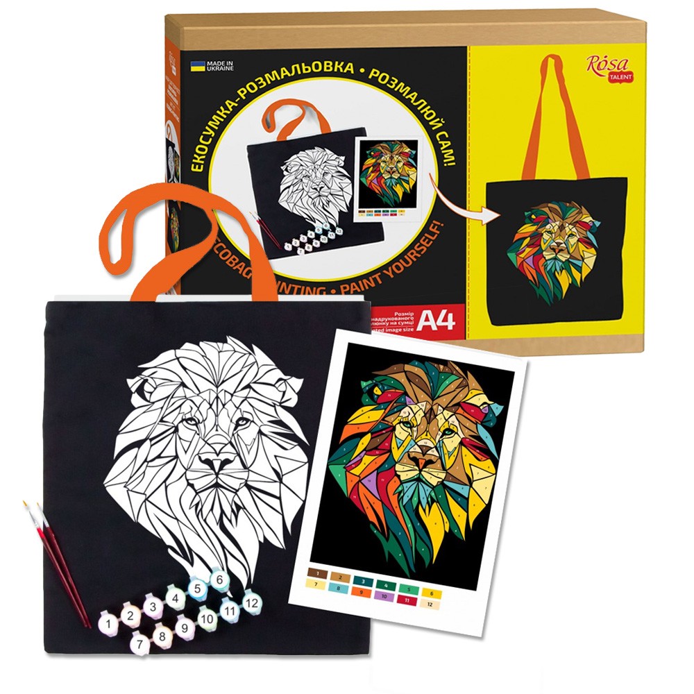 Eko-torba do kolorowania ROSA Talent z motywem lwa wykonana jest z 100% bawełny. Gęsty, wysokiej jakości materiał oraz niezawodne, przeszycie rączek pozwala na obciążenie aż do 15 kg. Malowanie Eko-torby to niezwykle emocjonujący i jednocześnie łatwy proces, ponieważ kontury obrazu są już naniesione na bazę. Bawełniane torby typu shopper to świetne rozwiązanie dla tych, którzy dbają o środowisko. Zestaw zawiera wszystkie niezbędne materiały oraz szczegółowy opis procesu malowania.